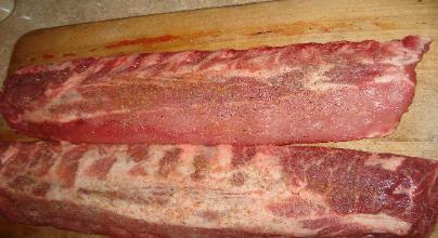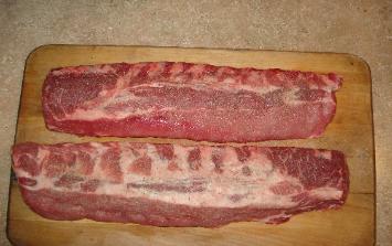 | Now the rub. With so many kinds of rubs and seasonings, each one can bring a different finished end taste. We carry so many at my butcher shop, it just depends on your mood or ideas Here is a simple but good rub I use. Cover ribs with Seasalt, Onion powder, and Cracked pepper. |